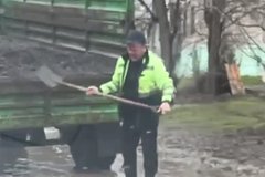 На записи, сделанной из окна автомобиля, можно увидеть, как рабочий в куртке кислотно-зеленого оттенка и кепке с помощью лопаты сбрасывает асфальтовую крошку из кузова грузовика прямо на затопленное дорожное полотно. «В Подмосковье ямочный ремонт вышел на новый уровень», — подписал публикацию автор. При этом он не уточнил, где именно в Подмосковье решили залатать дыры в асфальте.