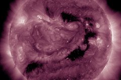 Ученые рассказали, что на Солнце наблюдается корональная дыра средних размеров, по расчетам первые признаки ее воздействия на планету должны были появиться уже в интервале между 6 и 9 часами утра по Москве, однако их пока не было замечено.