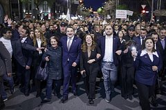 Сторонники партии «Сильная Армения», которую возглавляет российский бизнесмен Самвел Карапетян, начали шествие в центре Еревана. Кадры публикует РИА Новости.