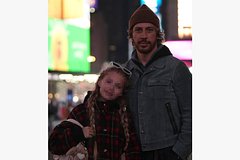 49-летний артист и его наследница снялись на Таймс-сквер в Нью-Йорке, США. Он позировал в серой курте и коричневой шапке, а девочка надела пальто в черно-красную клетку и уложила волосы в две косы.