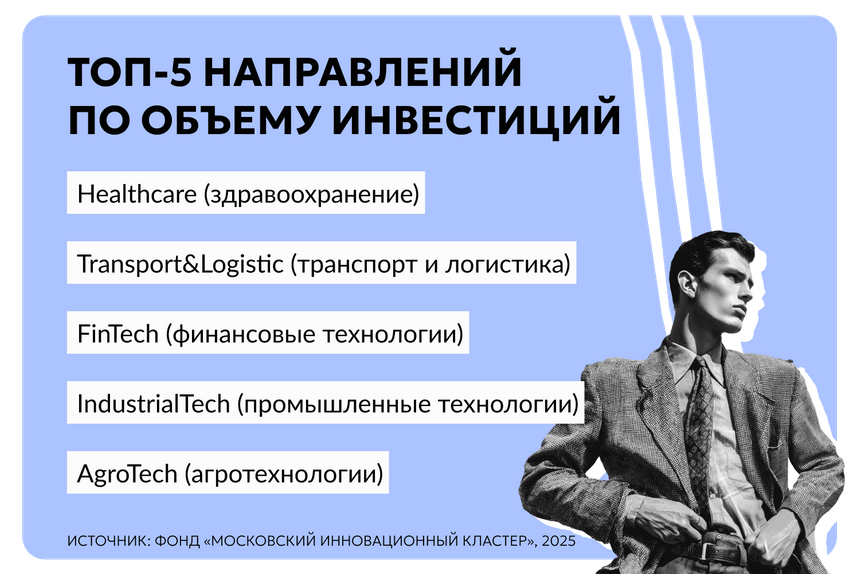 По данным Московского инновационного кластера, венчурный рынок в России ожил. Объем инвестиций в первом полугодии 2025 года увеличился на 81% год к году, до $83 млн. А средний чек прибавил 90% — до $1,4 млн. При этом рынок сохраняет фокус на поздние стадии — Раунд B и Раунд C+.