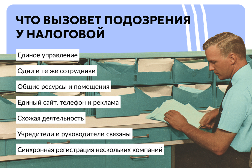 Например, если весь поток клиентов направить на одну компанию, то она должна будет применять ОСНО. А если разделить на две или три компании, они уложатся по оборотам в УСН, что дешевле по налогам. Отсюда экономия на налогах, которую ФНС не приветствует.