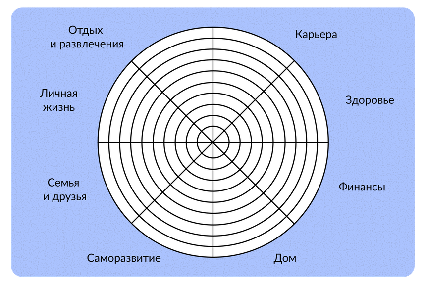 Чтобы примерно понять, в каких вопросах ИИ может стать вам полезным ассистентом, Дарья Мингалиева советует нарисовать колесо баланса. На его лучах находятся разные сферы — дом, финансы, здоровье, саморазвитие и так далее. Распишите основные задачи для каждой сферы и подумайте, где ИИ может помочь.