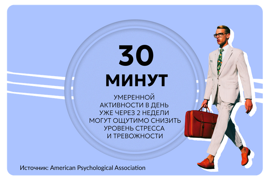 Физические нагрузки. Подойдут регулярные занятия спортом, частые прогулки на свежем воздухе и пятиминутки в течение рабочего дня.
