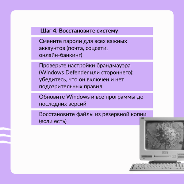 Делайте регулярные резервные копии. Храните их отдельно от компьютера — можно использовать внешние жесткие диски или облачные хранилища. Настройте автоматическое резервное копирование важных файлов.