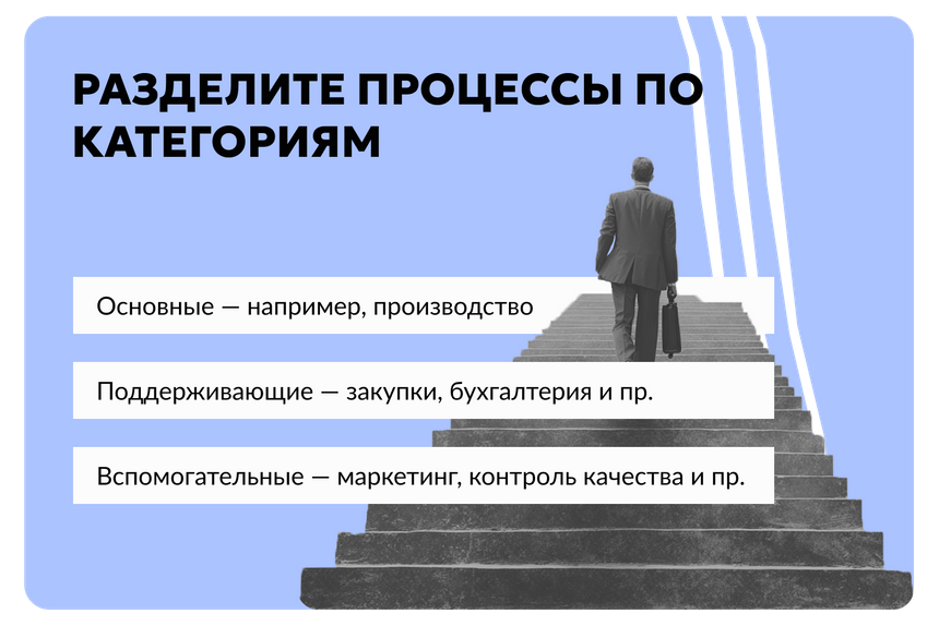 У вас уже есть общее понимание того, как работает компания. Теперь нужно это детализировать, чтобы получилась четкая схема. Она нужна и самим сотрудникам, и вам — для удобства контроля, для повышения эффективности процессов. Когда все четко описано, вы можете увидеть проблемные места и устранить их.