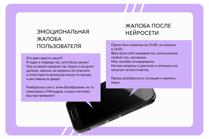 Здесь и поможет нейросеть. Ей можно своими словами изложить суть проблемы, а потом попросить переписать это в формате официальной жалобы: сухо, по делу, с правильной структурой. Останется только проверить факты и цифры.