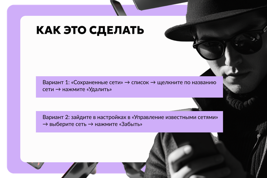 Правило № 2: не подключаться к открытым сетям Wi-Fi (это те, для подключения к которым не нужно вводить пароль). А еще периодически чистить список сохраненных сетей.