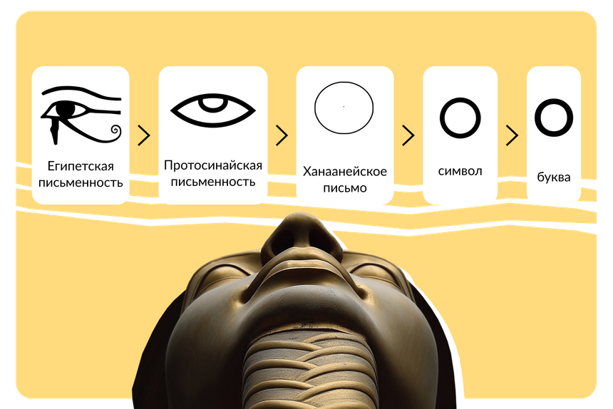 Финикийскому письму предшествовала египетская письменность, и в ней буква «О» изображалась в виде глаза. Позднее зрачок у глаза потерялся, тот скруглился, и получилась современная буква.