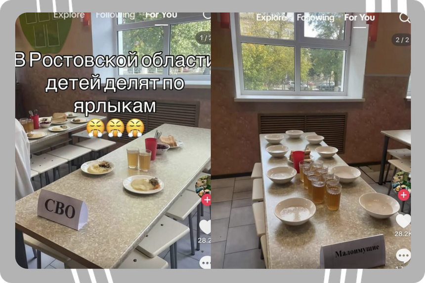 Власти объяснили разделение детей табличками «Малоимущие» и «СВО» в школе Азова. По данным Минобразования Ростовской области, работник столовой поставил таблички «для удобства раздачи порций». И это было единожды.