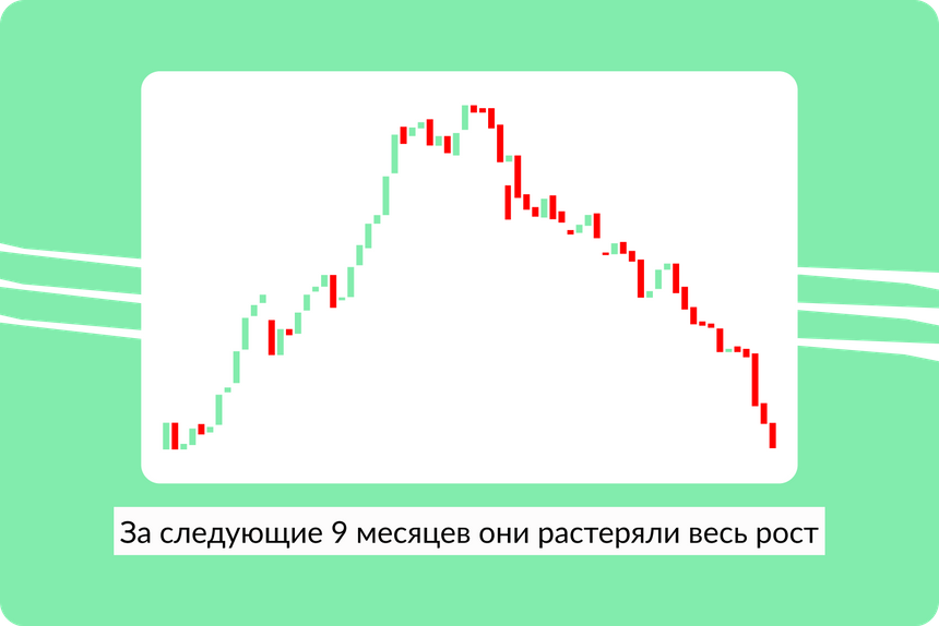 Действительно, зачем инвестировать во что-то, что растет медленнее? Но результат в прошлом почти ничего не говорит о том, что будет дальше. В любой момент котировки могут развернуться. Что и получилось с бумагами этой компании.