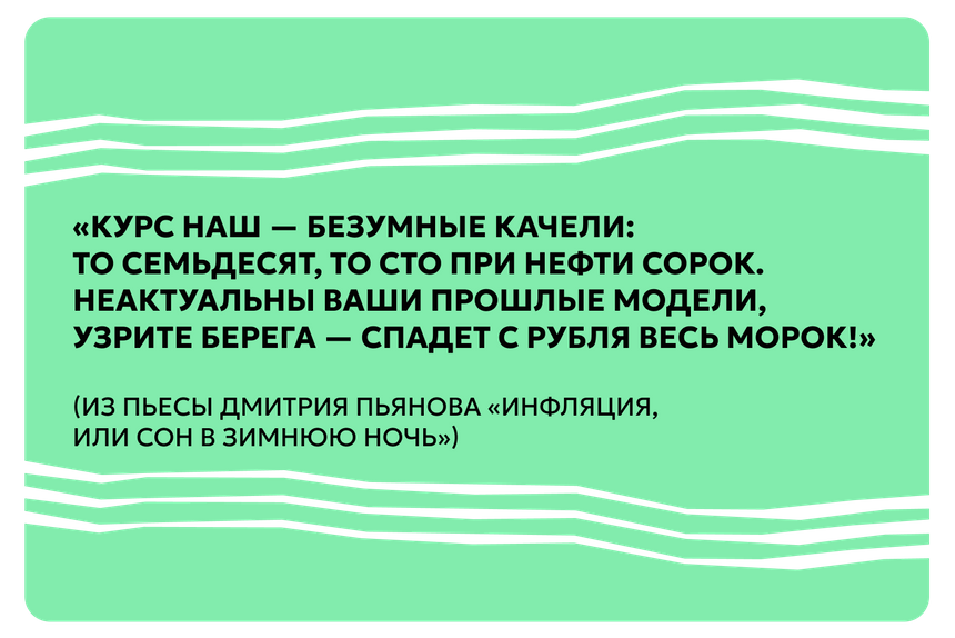 Пьянов говорит, что нашим партнерам (например, из Китая) сложно объяснить, как именно формируется курс рубля к юаню. Топ-менеджер даже написал про это пьесу «Инфляция, или Сон в зимнюю ночь», где сравнил нынешнее курсообразование с магией.