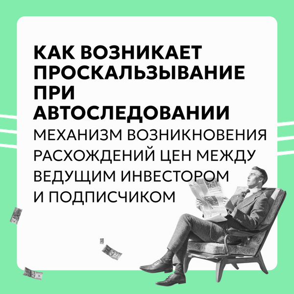 Из-за проскальзываний подписчик, как правило, зарабатывает меньше управляющего инвестора. И чем агрессивнее стратегия, тем сильнее проскальзывания. Они могут составлять десятки и сотни рублей.