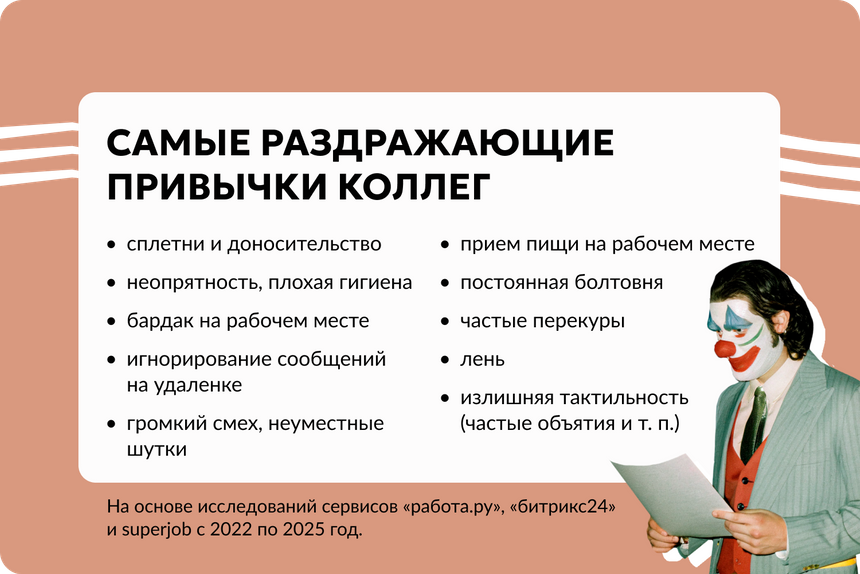 - «В коллегах по офису россиян больше всего раздражают сплетни, по удаленке — игнорирование сообщений и отсутствие дисциплины». Исследование компании Superjob. 2022