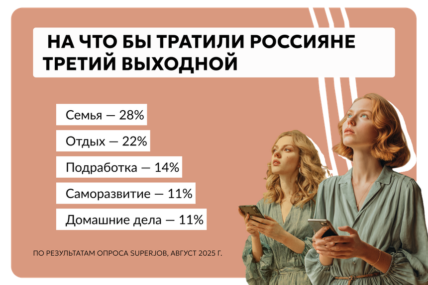Согласно опросам, сторонников четырехдневки в России становится все больше. В августе 2025-го 56% респондентов высказались за сокращение рабочей недели, еще 25% выступили против, а 19% затруднились с ответом.