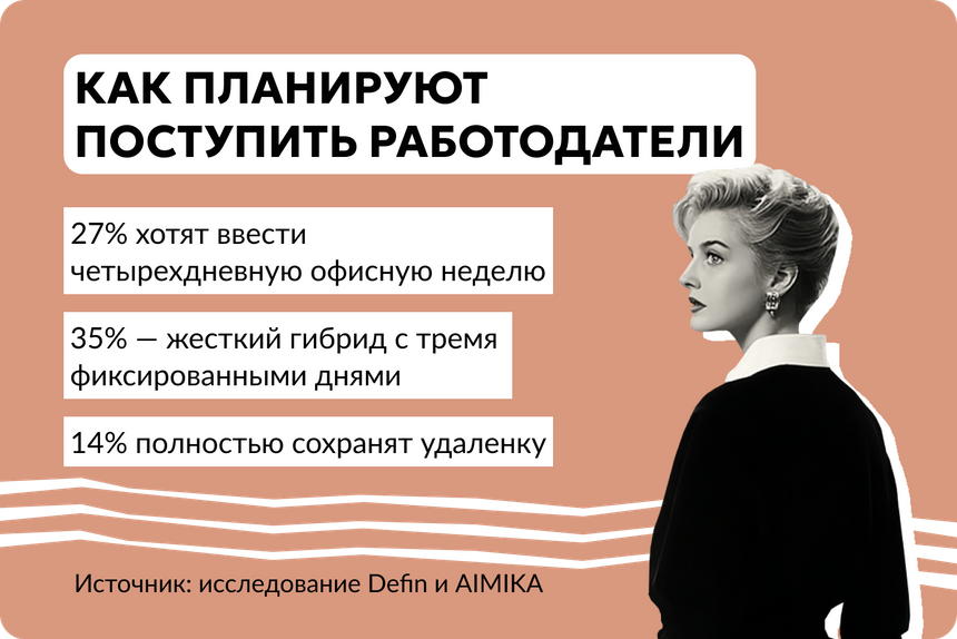 Компании понимают, что обратная сторона таких жестких мер — проблемы с сотрудниками. Почти половина (46%) признают, что после возвращения сотрудников в офисы начнутся увольнения и текучка кадров. А 34% видят другую угрозу: конкуренты, которые оставят удаленку, переманят лучших сотрудников. Чтобы их удержать, придется поднимать зарплаты.